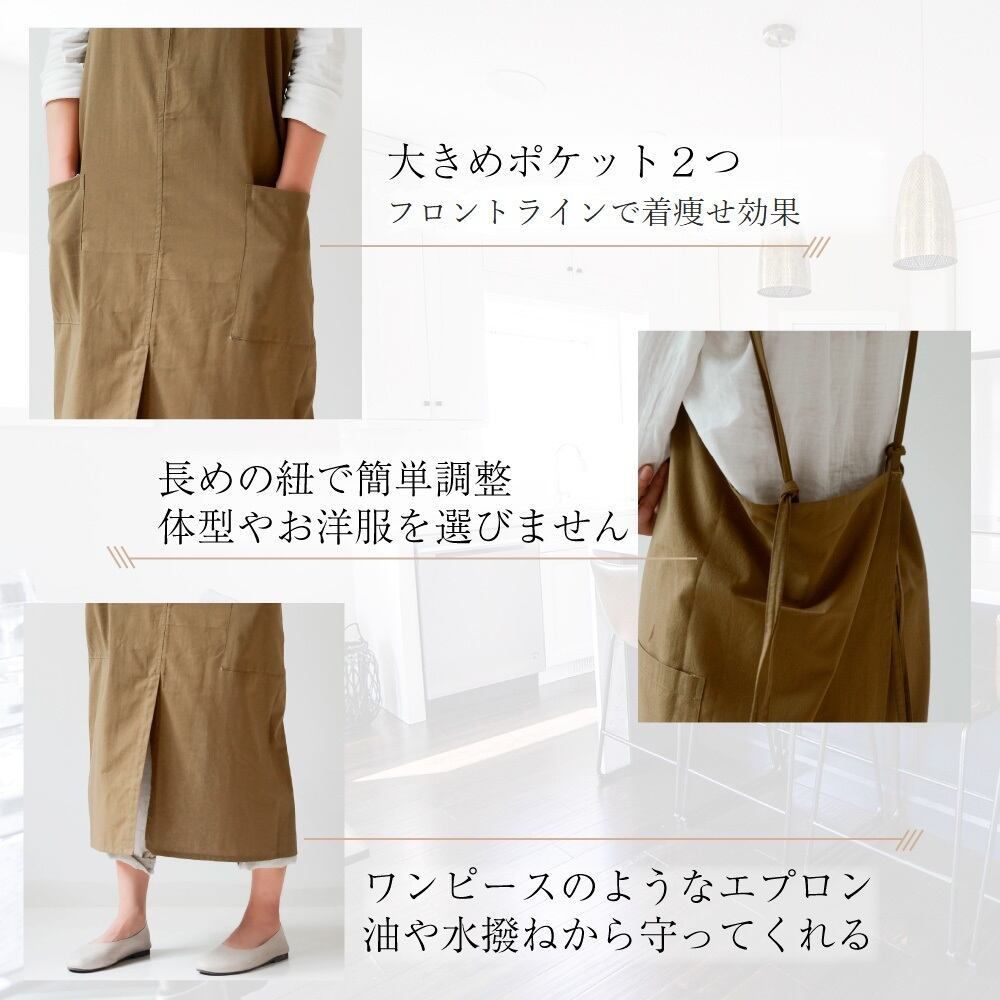 【エプロンワンピースとしても♪】お料理シーン以外でも、ボトムを合わせたり、色々着こなしが楽しめる1枚。 バックプリントシャツに重ねたコーディネートもおすすめです!